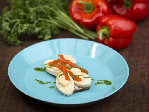 Røget makrel med tomat-æblemayonnaise, peberfrugt og dild (cremet)